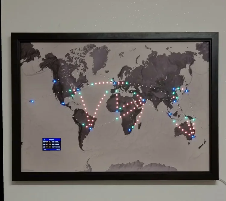 A1 Frame. 22 live flights. 190 LEDs. Real-time Flightradar24 data on your wall — no subscription required.
